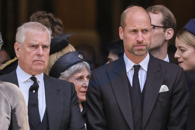 London, UK, 16th Sep 2025. Prince Andrew, Prince William. Senior members of the Royal Family all pay their last respects as the coffin is carried to the hearse. They then depart from Westminster Cathedral after the a requiem mass, a Catholic funeral service held for the Duchess of Kent, who passed away on 4 Sep., Credit:Imageplotter / Avalon