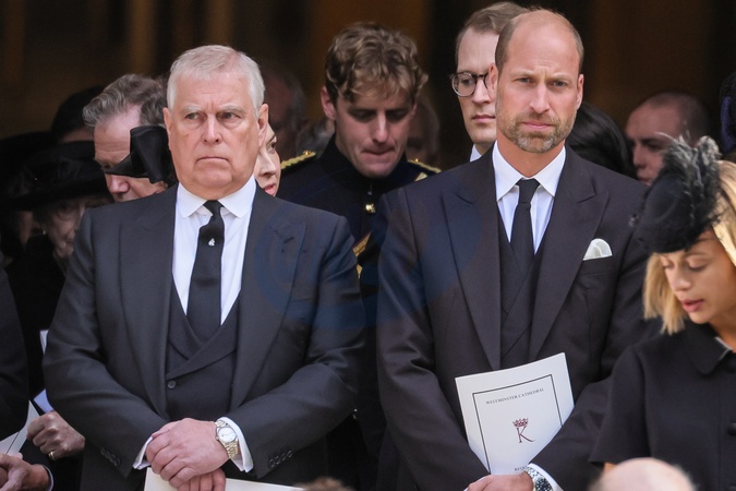 London, UK, 16th Sep 2025. Prince Andrew, Prince William. Senior members of the Royal Family all pay their last respects as the coffin is carried to the hearse. They then depart from Westminster Cathedral after the a requiem mass, a Catholic funeral service held for the Duchess of Kent, who passed away on 4 Sep., Credit:Imageplotter / Avalon