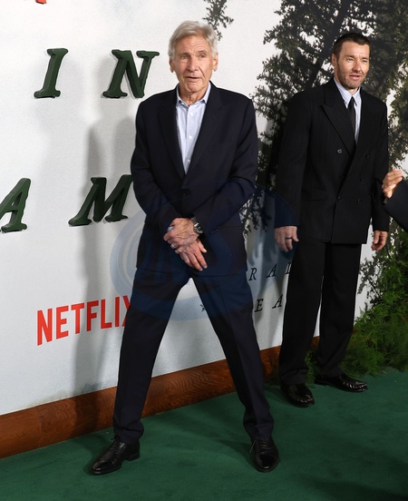 HOLLYWOOD, LOS ANGELES, CALIFORNIA, USA - NOVEMBER 03: Harrison Ford and Joel Edgerton arrive at the Premiere Of Netflix's 'Train Dreams' held at The Egyptian Theatre Hollywood on November 3, 2025 in Hollywood, Los Angeles, California, United States., Credit:Juan Pablo Rico / Avalon