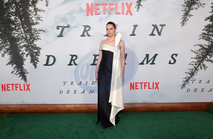 3 November 2025 . Los Angeles, California - Felicity Jones At Los Angeles Premiere Of Netflix's "Train Dreams held at The Egyptian Theater in Hollywood., Credit:Sadou Faye / Avalon