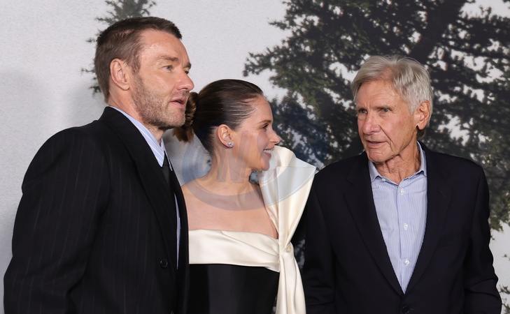 3 November 2025 . Los Angeles, California - Joel Edgerton, Felicity Jones, Harrison Ford At Los Angeles Premiere Of Netflix's "Train Dreams held at The Egyptian Theater in Hollywood., Credit:Sadou Faye / Avalon