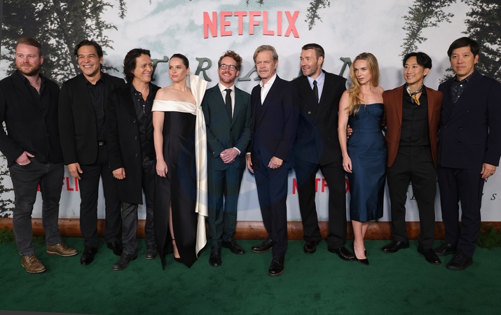 3 November 2025 . Los Angeles, California - Nathaniel Arcand, Clifton Collins Jr., Felicity Jones, Clint Bentley, William H. Macy, Joel Edgerton, Kerry Condon, Alfred Hsing, Dan Lin At Los Angeles Premiere Of Netflix's "Train Dreams held at The Egyptian Theater in Hollywood., Credit:Sadou Faye / Avalon