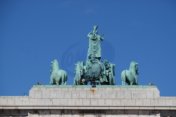 Spain, Madrid, Arco de la Victoria aka Puerta de la Moncloa is a triumphal arch built in the Moncloa district of Madrid, The arch was constructed at the behest of Francisco Franco to commemorate the victory of Francoist troops in the 1936 Battle of Ciudad Universitaria, part of the Spanish Civil War., Credit:Fabio Mazzarella / Avalon