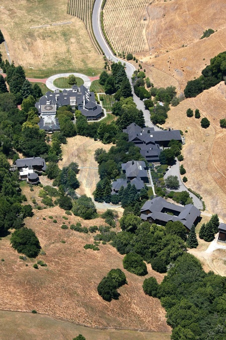 16001, MARIN COUNTY, CALIFORNIA. Tuesday, June 19, 2007. Aerial views of Skywalker Ranch in Northern California. The 4,700 acre property is the workplace of film director and producer George Lucas in secluded but open country near Nicasio, California in Marin County. Assembled parcel by parcel since September 1978, Skywalker Ranch has cost Lucas up to $100 million, according to the Wall Street Journal. The secluded property is not open to the public and Lucas has only developed 15 acres of the ranch which include, a barn with animals, vineyards, a garden with fruits and vegetables used in the on-site restaurant, an outdoor swimming pool and fitness center with racquetball courts, the man-made "Lake Ewok", a hilltop observatory, a 300-seat theater called "The Stag" as well as multiple theater screening rooms, and parking that is mostly concealed underground to preserve the natural landscape. Skywalker Sound was moved onto the ranch in 1987, now occupying the Technical Building. The Main House has a company research library under a stained-glass dome. Skywalker Ranch has its own fire station, which is part of the Marin County Mutual Aid system, and is often called on to assist firefighters in nearby Marinwood. Skywalker Ranch is intended to be more of a "filmmaker's retreat" than a headquarters for Lucas's business operations. The headquarters of Lucasfilm, Industrial Light & Magic, and LucasArts are located in Lucas's Letterman Digital Arts Center in the Presidio of San Francisco. Lucas does not live on the Ranch.***FEE MUST BE AGREED PRIOR TO USAGE***, Credit:pacificcoastnews.com / Avalon