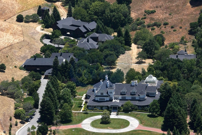 16001, MARIN COUNTY, CALIFORNIA. Tuesday, June 19, 2007. Aerial views of Skywalker Ranch in Northern California. The 4,700 acre property is the workplace of film director and producer George Lucas in secluded but open country near Nicasio, California in Marin County. Assembled parcel by parcel since September 1978, Skywalker Ranch has cost Lucas up to $100 million, according to the Wall Street Journal. The secluded property is not open to the public and Lucas has only developed 15 acres of the ranch which include, a barn with animals, vineyards, a garden with fruits and vegetables used in the on-site restaurant, an outdoor swimming pool and fitness center with racquetball courts, the man-made "Lake Ewok", a hilltop observatory, a 300-seat theater called "The Stag" as well as multiple theater screening rooms, and parking that is mostly concealed underground to preserve the natural landscape. Skywalker Sound was moved onto the ranch in 1987, now occupying the Technical Building. The Main House has a company research library under a stained-glass dome. Skywalker Ranch has its own fire station, which is part of the Marin County Mutual Aid system, and is often called on to assist firefighters in nearby Marinwood. Skywalker Ranch is intended to be more of a "filmmaker's retreat" than a headquarters for Lucas's business operations. The headquarters of Lucasfilm, Industrial Light & Magic, and LucasArts are located in Lucas's Letterman Digital Arts Center in the Presidio of San Francisco. Lucas does not live on the Ranch.***FEE MUST BE AGREED PRIOR TO USAGE***, Credit:pacificcoastnews.com / Avalon
