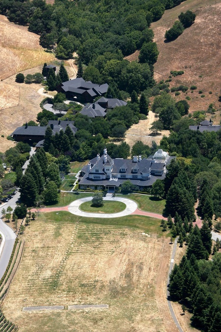 16001, MARIN COUNTY, CALIFORNIA. Tuesday, June 19, 2007. Aerial views of Skywalker Ranch in Northern California. The 4,700 acre property is the workplace of film director and producer George Lucas in secluded but open country near Nicasio, California in Marin County. Assembled parcel by parcel since September 1978, Skywalker Ranch has cost Lucas up to $100 million, according to the Wall Street Journal. The secluded property is not open to the public and Lucas has only developed 15 acres of the ranch which include, a barn with animals, vineyards, a garden with fruits and vegetables used in the on-site restaurant, an outdoor swimming pool and fitness center with racquetball courts, the man-made "Lake Ewok", a hilltop observatory, a 300-seat theater called "The Stag" as well as multiple theater screening rooms, and parking that is mostly concealed underground to preserve the natural landscape. Skywalker Sound was moved onto the ranch in 1987, now occupying the Technical Building. The Main House has a company research library under a stained-glass dome. Skywalker Ranch has its own fire station, which is part of the Marin County Mutual Aid system, and is often called on to assist firefighters in nearby Marinwood. Skywalker Ranch is intended to be more of a "filmmaker's retreat" than a headquarters for Lucas's business operations. The headquarters of Lucasfilm, Industrial Light & Magic, and LucasArts are located in Lucas's Letterman Digital Arts Center in the Presidio of San Francisco. Lucas does not live on the Ranch.***FEE MUST BE AGREED PRIOR TO USAGE***, Credit:pacificcoastnews.com / Avalon