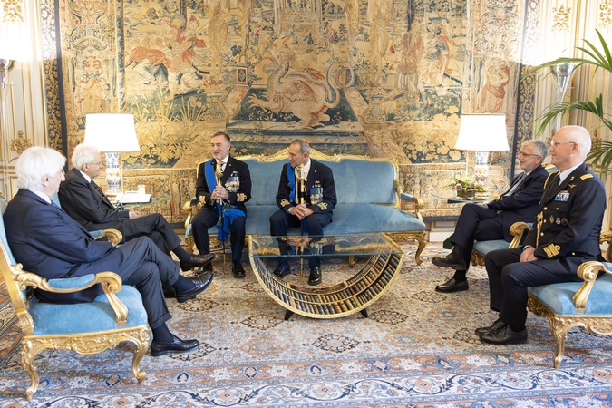President Sergio Mattarella with Enrico Credendino and Giuseppe Berutti Bergotto, outgoing and incoming Chief of Staff of the Navy. Rome, Italy 05 November 2025, Credit:Francesco Ammendola / Avalon
