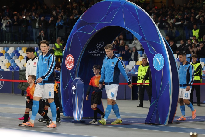 Champions League match between Napoli and Eintracht Frankfurt at the Diego Armando Maradona Stadium. Pictured is Rasmus Hoyland of SSC Napoli. Naples, Italy 04 November 2025, Credit:Fabio Sasso / Avalon