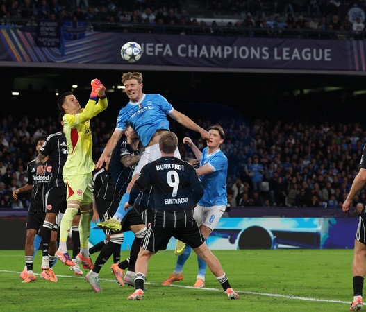 Champions League match between Napoli and Eintracht Frankfurt at the Diego Armando Maradona Stadium. Pictured is Rasmus Hoyland of SSC Napoli. Naples, Italy 04 November 2025, Credit:Fabio Sasso / Avalon