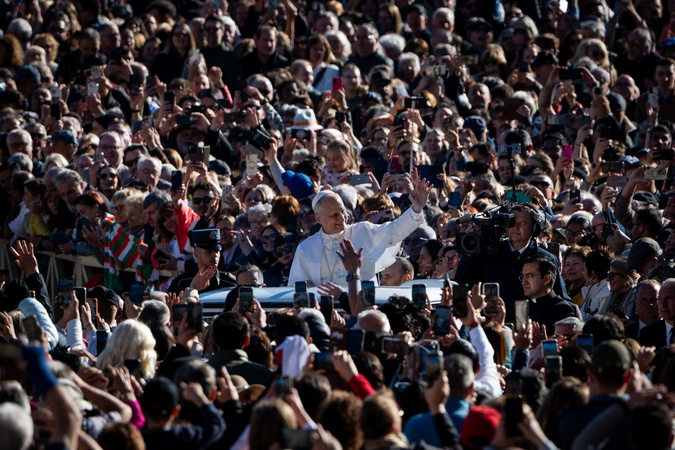 Pope Leo XIV leads his traditional Wednesday General Audience in St. Peter's Square in Vatican City, Vatican, on 05 November 2025., Credit:Stefano Costantino TTL / Avalon