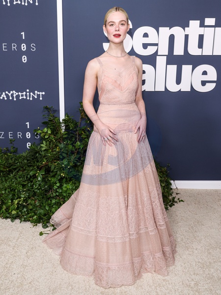 LOS ANGELES, CALIFORNIA, USA - NOVEMBER 05: American actress and singer Elle Fanning wearing a Fendi Couture dress and Cartier jewelry arrives at the Los Angeles Premiere Of Neon's 'Sentimental Value' held at the DGA Theater Complex at The Directors Guild of America on November 5, 2025 in Los Angeles, California, United States., Credit:Xavier Collin / Avalon