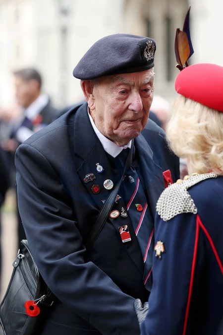 Queen Camilla speaks with a veteran on a visit to the 97th Field Of Remembrance at Westminster Abbey on November 06, 2025 in London, England. The Field of Remembrance has been held every November since 1928 when The Poppy Factory, of which Queen Camilla is Patron, brought a group of disabled veterans, a tray of poppies and a collecting tin to the grounds of St Margaret's Church at Westminster Abbey., Credit:Avalon.red / Avalon