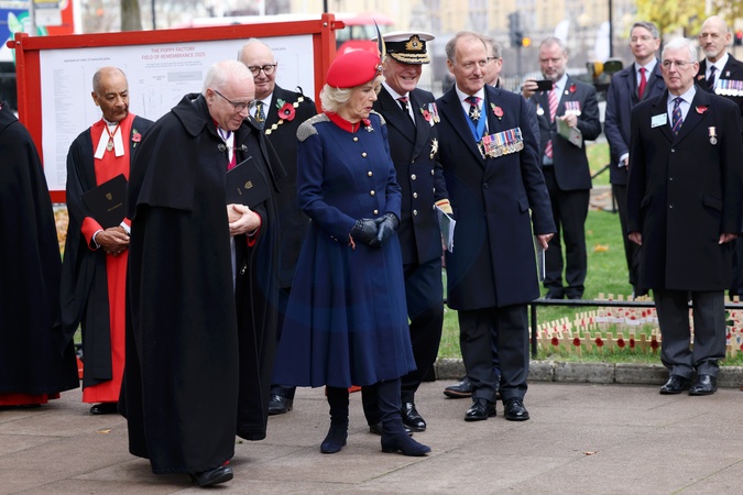 Dean of Westminster, the Very Reverend Dr David Hoyle greets Queen Camilla as she visits the 97th Field Of Remembrance at Westminster Abbey on November 06, 2025 in London, England. The Field of Remembrance has been held every November since 1928 when The Poppy Factory, of which Queen Camilla is Patron, brought a group of disabled veterans, a tray of poppies and a collecting tin to the grounds of St Margaret's Church at Westminster Abbey., Credit:Avalon.red / Avalon