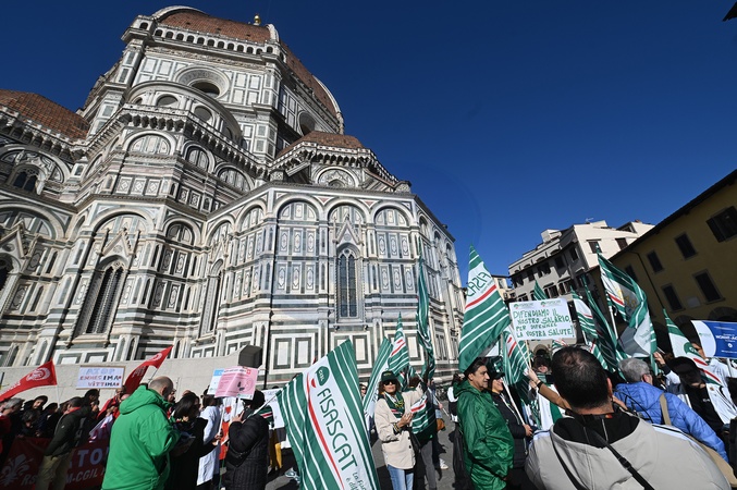 Private pharmacy workers held a strike and protest for the renewal of the national labor contract, which expired in 2024. The strike was called by CGIL, Filcams, CISL, FISASCAT, and UILTCUS. Florence, Italy 06 November 2025, Credit:Aleandro Biagianti / Avalon