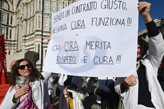 Private pharmacy workers held a strike and protest for the renewal of the national labor contract, which expired in 2024. The strike was called by CGIL, Filcams, CISL, FISASCAT, and UILTCUS. Florence, Italy 06 November 2025, Credit:Aleandro Biagianti / Avalon