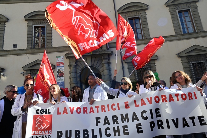 Private pharmacy workers held a strike and protest for the renewal of the national labor contract, which expired in 2024. The strike was called by CGIL, Filcams, CISL, FISASCAT, and UILTCUS. Florence, Italy 06 November 2025, Credit:Aleandro Biagianti / Avalon