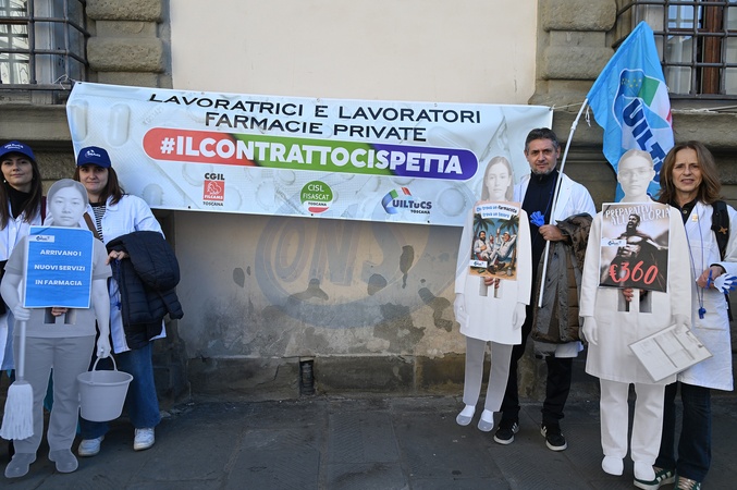 Private pharmacy workers held a strike and protest for the renewal of the national labor contract, which expired in 2024. The strike was called by CGIL, Filcams, CISL, FISASCAT, and UILTCUS. Florence, Italy 06 November 2025, Credit:Aleandro Biagianti / Avalon
