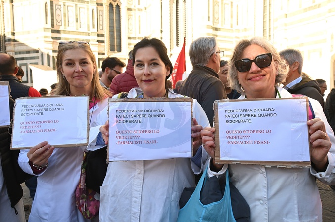 Private pharmacy workers held a strike and protest for the renewal of the national labor contract, which expired in 2024. The strike was called by CGIL, Filcams, CISL, FISASCAT, and UILTCUS. Florence, Italy 06 November 2025, Credit:Aleandro Biagianti / Avalon