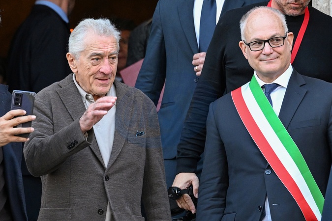 Robert De Niro arrived in the capital today for a two-day celebration combining cinema, culture, and luxury hospitality. Pictured is the actor at the Capitoline Hill, where he will receive an official award—the Capitoline Wolf. Pictured is Robert De Niro with Rome Mayor Roberto Gualtieri on Nov 6th 2025, Credit:Maria Laura Antonelli/AGF / Avalon