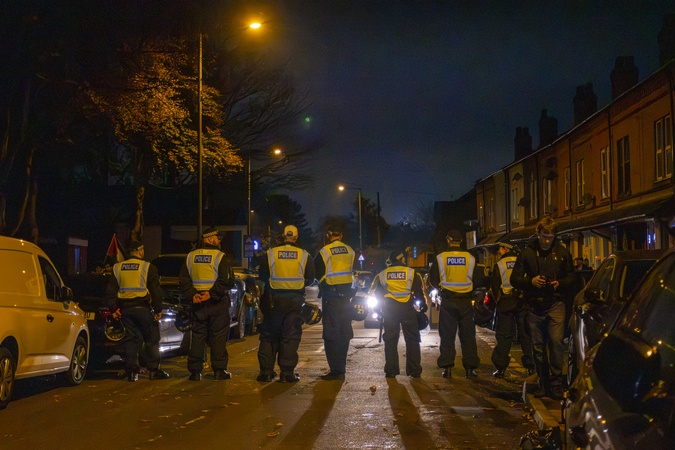 Pro-Palestine protesters gathered outside Villa Park Stadium in Birmingham as Aston Villa hosted Israeli football club Maccabi Tel Aviv. Demonstrators condemned Israel's actions in Gaza and called for sporting boycotts against Israeli teams., Credit:Zak Irfan / Avalon