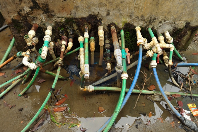 Chattogram, Bangladesh: Deep tube-well pipe lines in Bakalia area. Most local wells are saline or iron-contaminated, usable only for washing and other cleaning purposes. For drinking, people rely on limited rainwater and private motor pumps, while those who can afford it buy filtered water at 20–40 Tk per 20-liter pot from local dealer., Credit:Md Rafayat Haque Khan / Avalon
