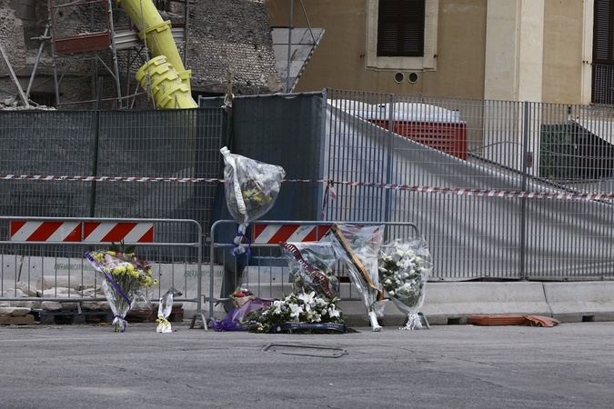07/11/25 Roma. Fiori sotto la Torre dei Conti, la torre medievale crollata durante il restauro e dove ha perso la vita un'operaio che ci stava lavorando., Credit:Francesco Fotia / Avalon