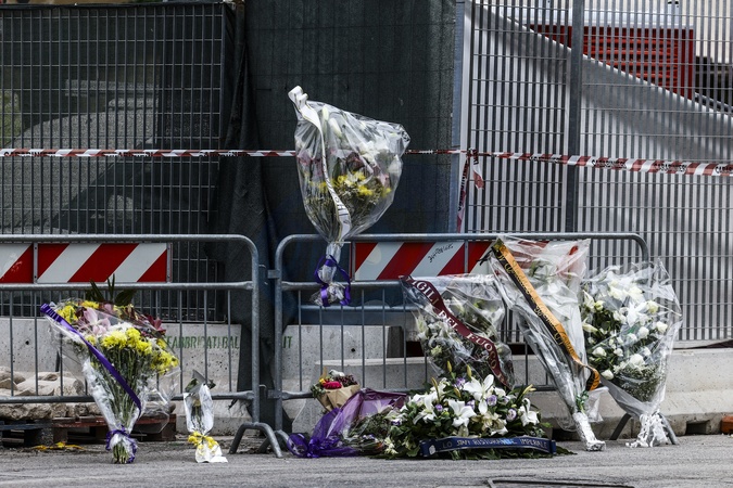 Fiori sotto la Torre dei Conti dopo il crollo