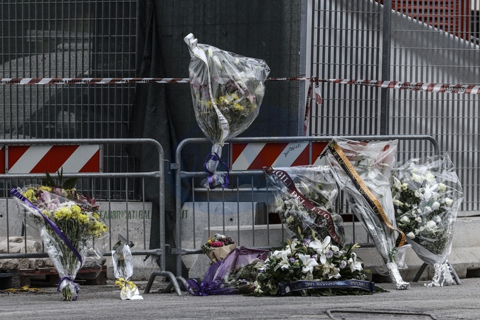 07/11/25 Roma. Fiori sotto la Torre dei Conti, la torre medievale crollata durante il restauro e dove ha perso la vita un'operaio che ci stava lavorando., Credit:Francesco Fotia / Avalon