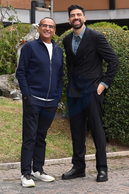 07/11/2025 Roma. Rai2 presentazione del programma televisivo Sanremo Giovani 2025. Nella foto Gianluca Gazzoli il conduttore e Carlo Conti Direttore Artistico e conduttore di Sanremo, Credit:Maria Laura Antonelli / Avalon