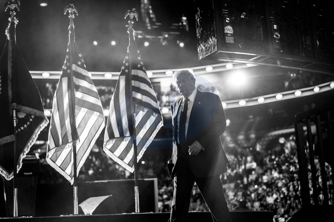 President Donald Trump gestures to the crowd after giving remarks at the America Business Forum Miami at the Kaseya Center in Miami, Florida, Wednesday, November 5, 2025., Credit:Molly Riley / Avalon