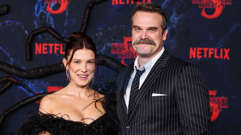 HOLLYWOOD, LOS ANGELES, CALIFORNIA, USA - NOVEMBER 06: Millie Bobby Brown and David Harbour arrive at the Los Angeles Premiere Of Netflix's 'Stranger Things' Season 5 held at the TCL Chinese Theatre IMAX on November 6, 2025 in Hollywood, Los Angeles, California, United States., Credit:Xavier Collin / Avalon
