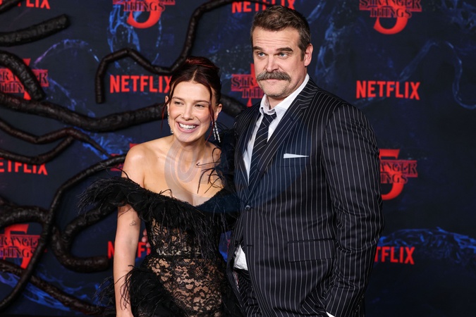 HOLLYWOOD, LOS ANGELES, CALIFORNIA, USA - NOVEMBER 06: Millie Bobby Brown and David Harbour arrive at the Los Angeles Premiere Of Netflix's 'Stranger Things' Season 5 held at the TCL Chinese Theatre IMAX on November 6, 2025 in Hollywood, Los Angeles, California, United States., Credit:Xavier Collin / Avalon