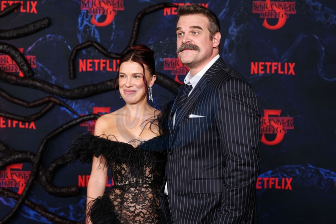 HOLLYWOOD, LOS ANGELES, CALIFORNIA, USA - NOVEMBER 06: Millie Bobby Brown and David Harbour arrive at the Los Angeles Premiere Of Netflix's 'Stranger Things' Season 5 held at the TCL Chinese Theatre IMAX on November 6, 2025 in Hollywood, Los Angeles, California, United States., Credit:Xavier Collin / Avalon