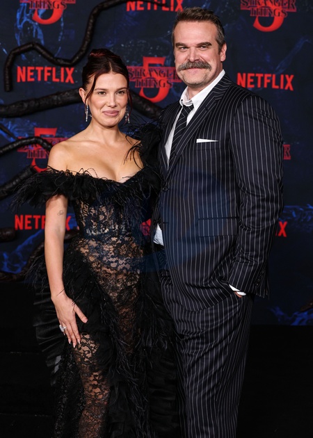HOLLYWOOD, LOS ANGELES, CALIFORNIA, USA - NOVEMBER 06: Millie Bobby Brown and David Harbour arrive at the Los Angeles Premiere Of Netflix's 'Stranger Things' Season 5 held at the TCL Chinese Theatre IMAX on November 6, 2025 in Hollywood, Los Angeles, California, United States., Credit:Xavier Collin / Avalon
