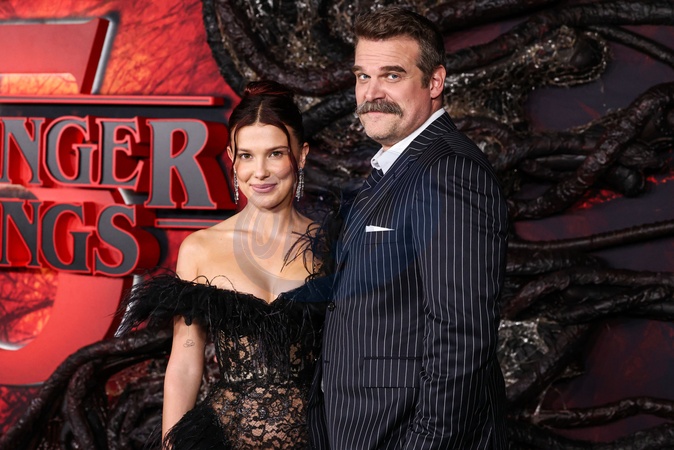 HOLLYWOOD, LOS ANGELES, CALIFORNIA, USA - NOVEMBER 06: Millie Bobby Brown and David Harbour arrive at the Los Angeles Premiere Of Netflix's 'Stranger Things' Season 5 held at the TCL Chinese Theatre IMAX on November 6, 2025 in Hollywood, Los Angeles, California, United States., Credit:Xavier Collin / Avalon
