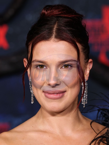 HOLLYWOOD, LOS ANGELES, CALIFORNIA, USA - NOVEMBER 06: British actress and producer Millie Bobby Brown wearing Rodarte and Chopard earrings and a ring, both from the Haute Joaillerie Collection arrives at the Los Angeles Premiere Of Netflix's 'Stranger Things' Season 5 held at the TCL Chinese Theatre IMAX on November 6, 2025 in Hollywood, Los Angeles, California, United States., Credit:Xavier Collin / Avalon