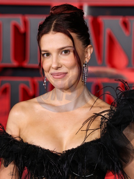 HOLLYWOOD, LOS ANGELES, CALIFORNIA, USA - NOVEMBER 06: British actress and producer Millie Bobby Brown wearing Rodarte and Chopard earrings and a ring, both from the Haute Joaillerie Collection arrives at the Los Angeles Premiere Of Netflix's 'Stranger Things' Season 5 held at the TCL Chinese Theatre IMAX on November 6, 2025 in Hollywood, Los Angeles, California, United States., Credit:Xavier Collin / Avalon