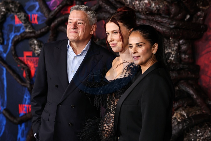 HOLLYWOOD, LOS ANGELES, CALIFORNIA, USA - NOVEMBER 06: Ted Sarandos, Millie Bobby Brown and Bela Bajaria arrive at the Los Angeles Premiere Of Netflix's 'Stranger Things' Season 5 held at the TCL Chinese Theatre IMAX on November 6, 2025 in Hollywood, Los Angeles, California, United States., Credit:Xavier Collin / Avalon
