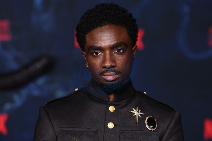 HOLLYWOOD, LOS ANGELES, CALIFORNIA, USA - NOVEMBER 06: Caleb McLaughlin wearing Wales Bonner FW25 RTW, specifically Look 15 from the Autumn Winter 2025 ‘Selah' Collection and a Hublot timepiece arrives at the Los Angeles Premiere Of Netflix's 'Stranger Things' Season 5 held at the TCL Chinese Theatre IMAX on November 6, 2025 in Hollywood, Los Angeles, California, United States., Credit:Xavier Collin / Avalon