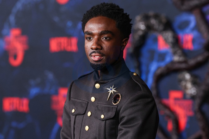 HOLLYWOOD, LOS ANGELES, CALIFORNIA, USA - NOVEMBER 06: Caleb McLaughlin wearing Wales Bonner FW25 RTW, specifically Look 15 from the Autumn Winter 2025 ‘Selah' Collection and a Hublot timepiece arrives at the Los Angeles Premiere Of Netflix's 'Stranger Things' Season 5 held at the TCL Chinese Theatre IMAX on November 6, 2025 in Hollywood, Los Angeles, California, United States., Credit:Xavier Collin / Avalon