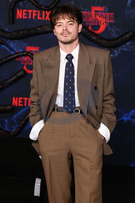 HOLLYWOOD, LOS ANGELES, CALIFORNIA, USA - NOVEMBER 06: Charlie Heaton arrives at the Los Angeles Premiere Of Netflix's 'Stranger Things' Season 5 held at the TCL Chinese Theatre IMAX on November 6, 2025 in Hollywood, Los Angeles, California, United States., Credit:Xavier Collin / Avalon