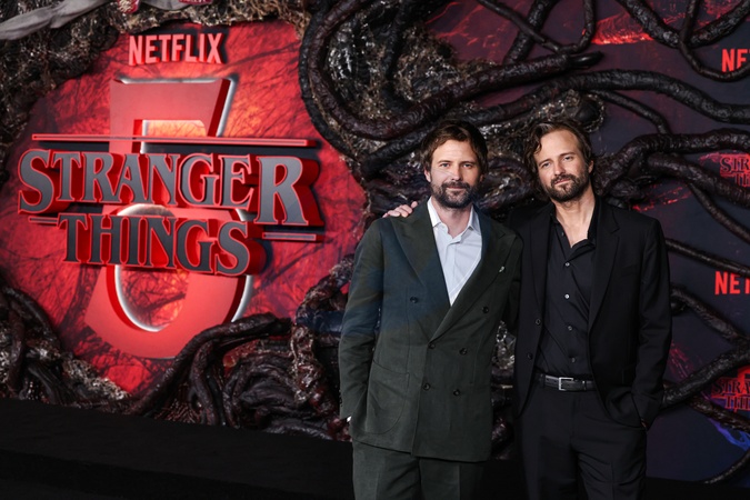 HOLLYWOOD, LOS ANGELES, CALIFORNIA, USA - NOVEMBER 06: Ross Duffer and Matt Duffer (The Duffer Brothers) arrive at the Los Angeles Premiere Of Netflix's 'Stranger Things' Season 5 held at the TCL Chinese Theatre IMAX on November 6, 2025 in Hollywood, Los Angeles, California, United States., Credit:Xavier Collin / Avalon