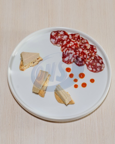 Meat Plate with Saucisson from Westcombe Dairy and Mousse De Canard duck pâté from Meat Fish Cheese on cherry shortbread at Nekter Deli in Shoreditch, London, Credit:Mario Mitsis / Avalon