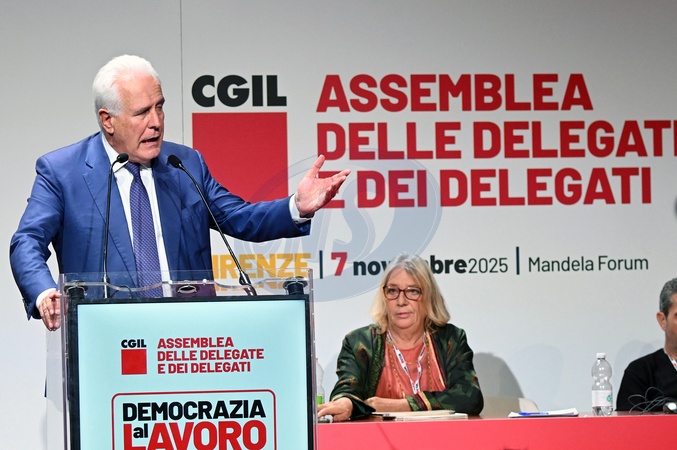 November 7, 2025, Florence. National Assembly of CGIL delegates, with the participation of the national secretary of the CGIL. Pictured is Eugenio Giani, President of Tuscany. Florence, Italy 07 November 2025, Credit:Aleandro Biagianti / Avalon