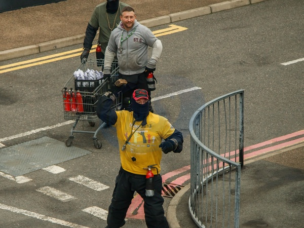 London's Metropolitan Police training in the face of extreme civil disorder, featuring the use of petrol bombs/molotov cocktails. This training took place in conjunction with the NUJ and their visit to the Metropolitan Police Specialist Training Centre in Gravesend, Kent, UK, 7 November 2025, Credit:Alex Day / Avalon
