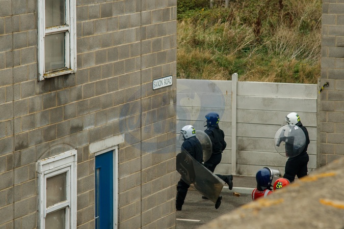 London's Metropolitan Police training in the face of extreme civil disorder, featuring the use of petrol bombs/molotov cocktails. This training took place in conjunction with the NUJ and their visit to the Metropolitan Police Specialist Training Centre in Gravesend, Kent, UK, 7 November 2025, Credit:Alex Day / Avalon