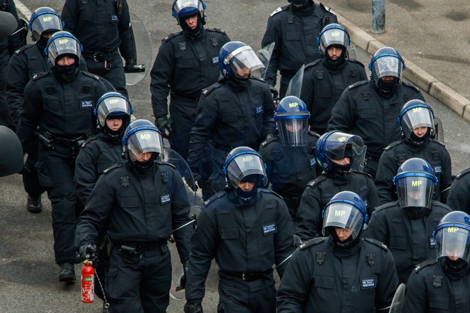 London's Metropolitan Police training in the face of extreme civil disorder, featuring the use of petrol bombs/molotov cocktails. This training took place in conjunction with the NUJ and their visit to the Metropolitan Police Specialist Training Centre in Gravesend, Kent, UK, 7 November 2025, Credit:Alex Day / Avalon