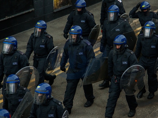 London's Metropolitan Police training in the face of extreme civil disorder, featuring the use of petrol bombs/molotov cocktails. This training took place in conjunction with the NUJ and their visit to the Metropolitan Police Specialist Training Centre in Gravesend, Kent, UK, 7 November 2025, Credit:Alex Day / Avalon