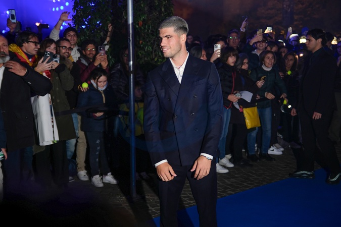 Piazza Castello. The tennis players participating in the 2025 ATP Finals parade along the Blue Carpet. Pictured is Carlos Alcaraz, appearing before the cameras. Turin, Italy 07 November 2025, Credit:Selene Daniele / Avalon