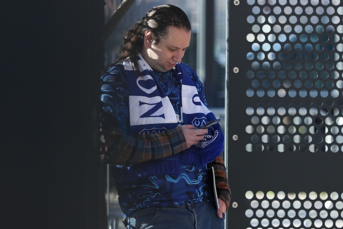 Everton fan checks lineup on his phone ahead of the Premier League match Everton vs Fulham at Hill Dickinson Stadium, Liverpool, United Kingdom, 8th November 2025, Credit:Jorge Horsted/News Images / Avalon